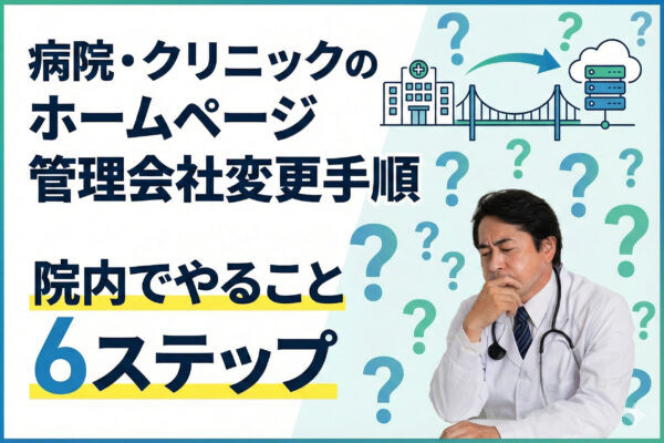 医院のホームページ管理会社に不満はありませんか?本記事では、病院・クリニック向けに管理会社を変更する際の流れを6つのステップでわかりやすく解説します。変更を検討中の先生はぜひご覧ください。