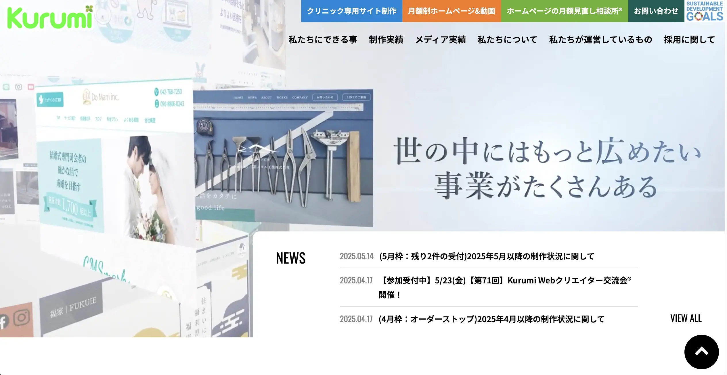 Kurumi株式会社は、東京都豊島区に拠点を置くWeb制作会社で、医療機関向けのホームページ制作に特化しています。制作費無料、月額9,980円(税込10,978円)からのプランを提供しており、PR動画の制作やWeb顧問のサポートが含まれています。また、院内のICT化にも対応しており、電子カルテや予約システムなどの導入支援も行っています。