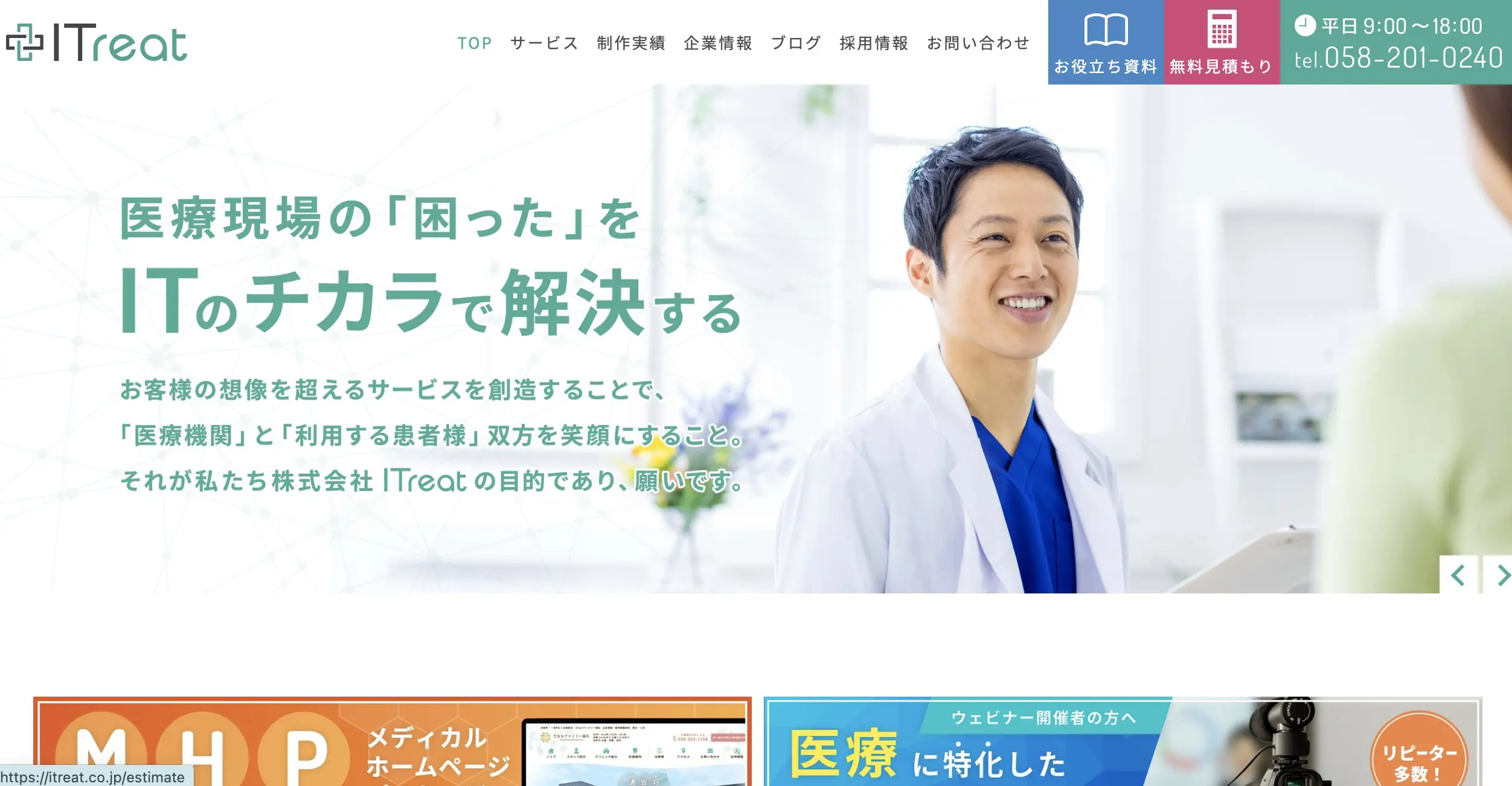株式会社ITreatでは、病院・クリニックを中心にホームページ制作を行っております。
