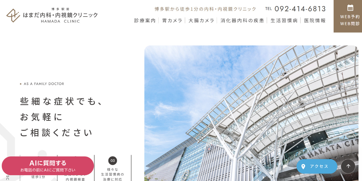 福岡県福岡市にある博多駅前はまだ内科・内視鏡クリニック様のホームページです。