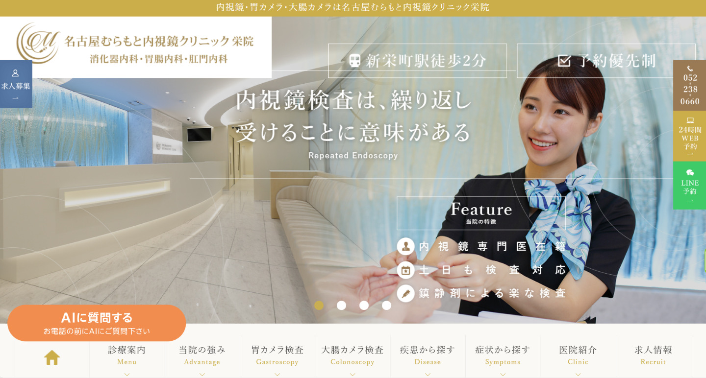 名古屋市にある名古屋むらもと内視鏡クリニック 栄院様のホームページです。