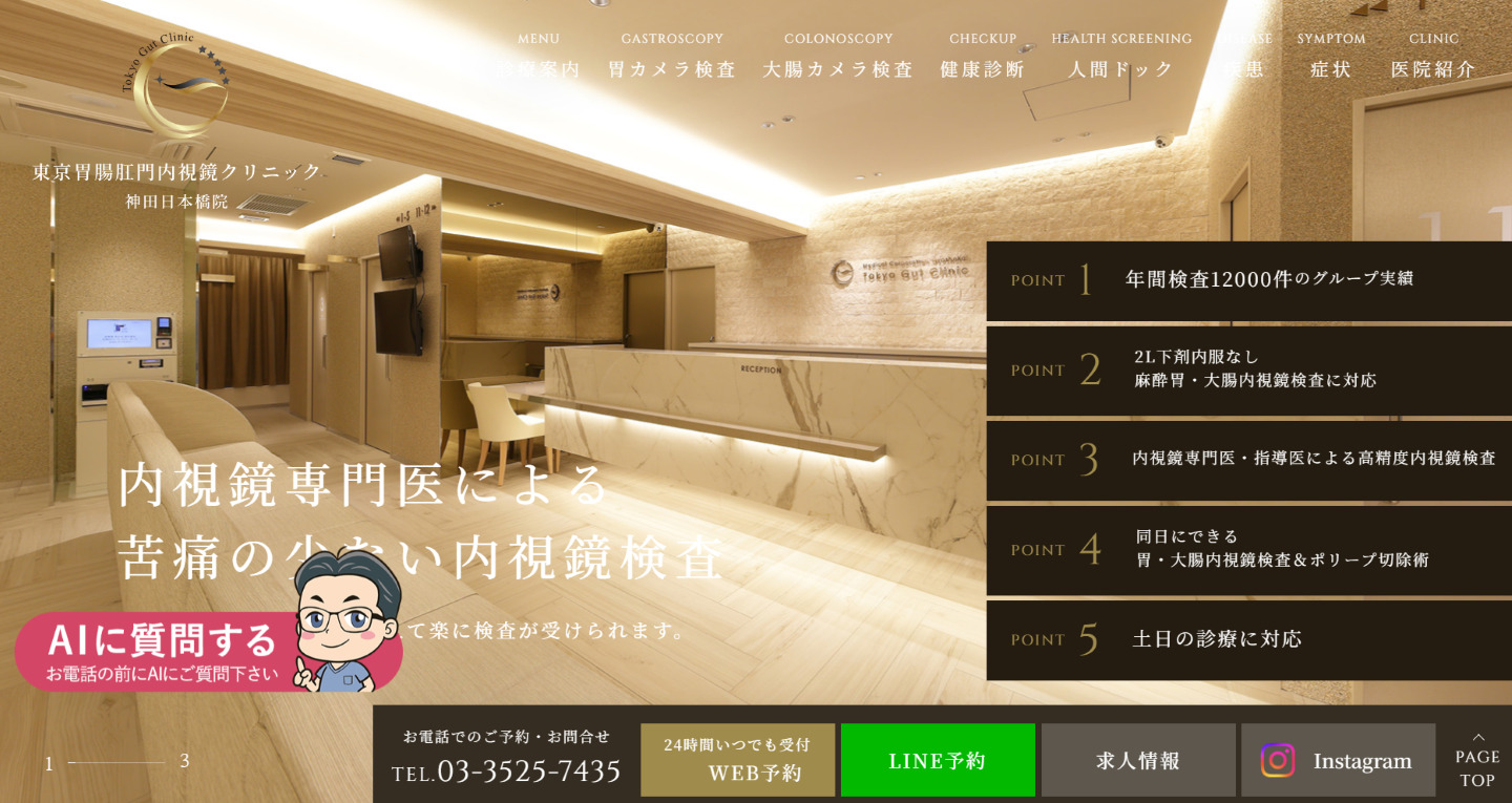 東京都にある東京胃腸肛門内視鏡クリニック様のホームページです。