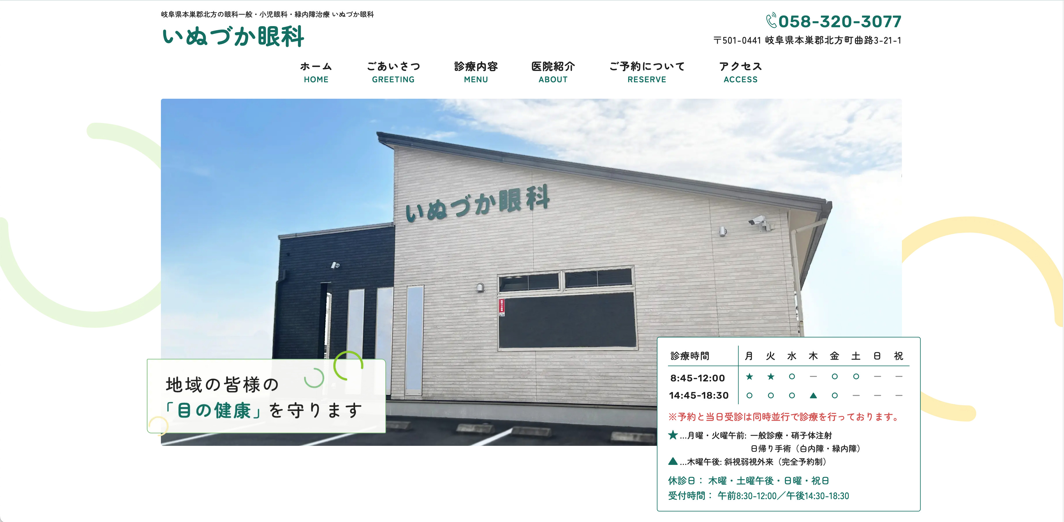 岐阜県本巣郡北方町にあるいぬづか眼科様のホームページです。