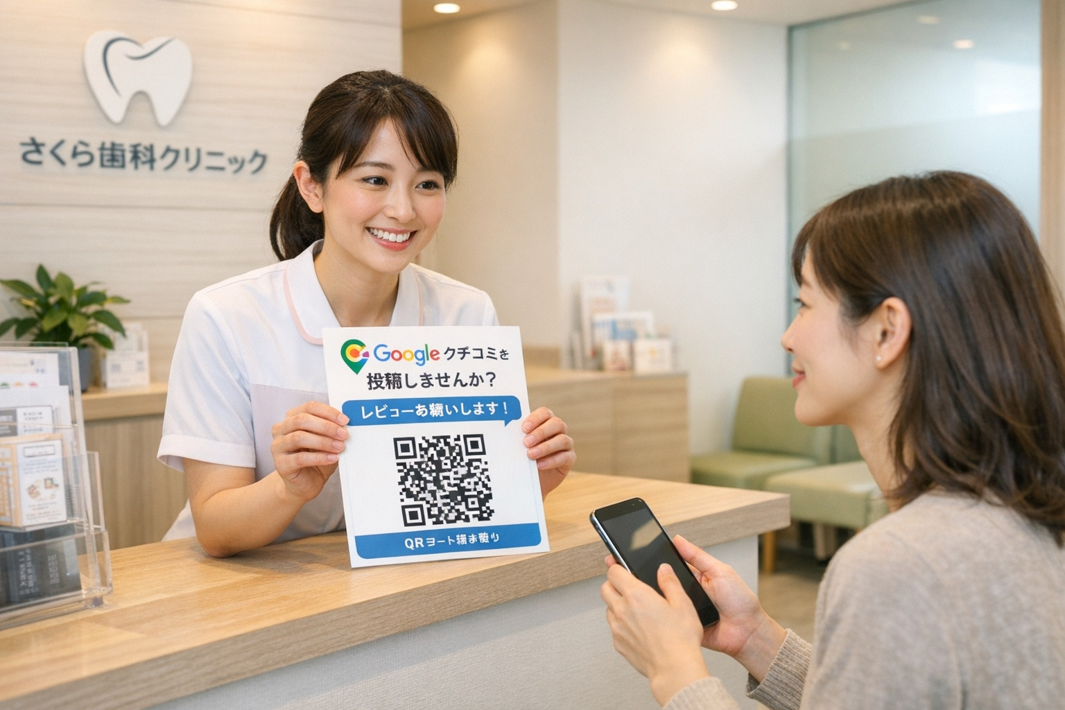 最も効果的なのは、患者さんの満足度が最も高い瞬間に依頼することです。会計後や診察終了後、「本日はいかがでしたか?もしよろしければ、Googleの口コミに感想をいただけると大変励みになります」と一言添えるだけで、反応率は大きく変わります。