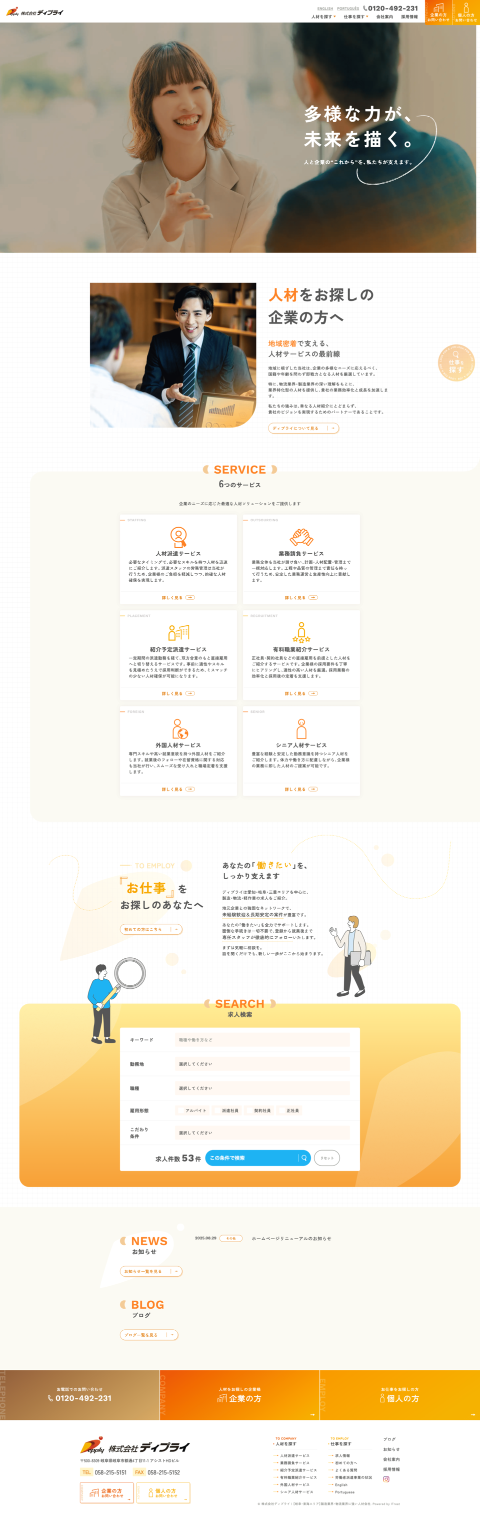 東海エリアを拠点に、製造業界・物流業界に特化した人材サービスを展開されている「株式会社ディプライ」様のコーポレートサイトを、この度フルリニューアルさせていただきました。