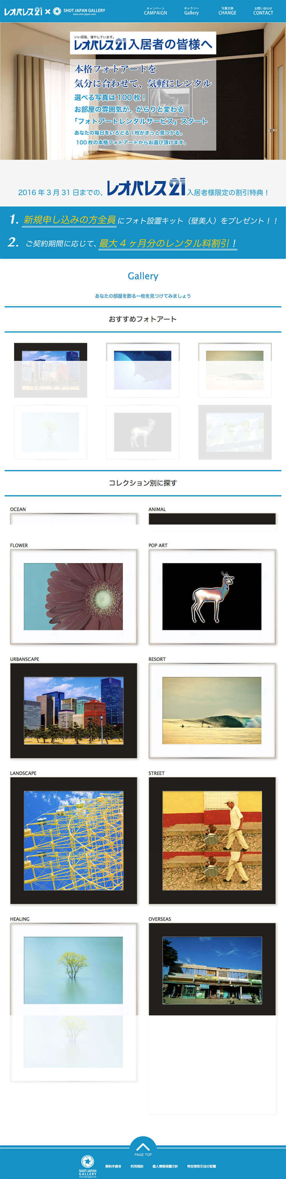 株式会社SHOT JAPAN 様が運営するサイト、「フォトアートレンタルサービス お部屋ギャラリー」のサイト制作をさせていただきました。