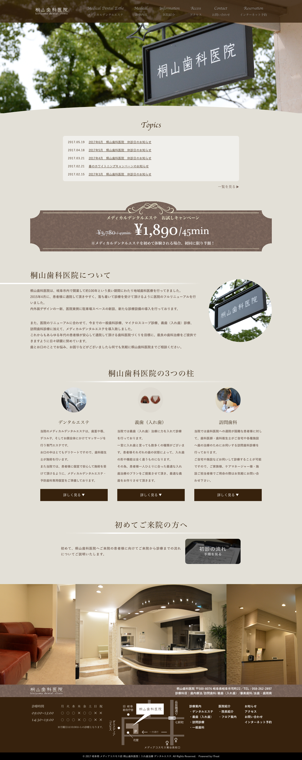 岐阜県岐阜市司町でご開業の桐山歯科医院様のホームページをフルリニューアル制作をさせていただきました。