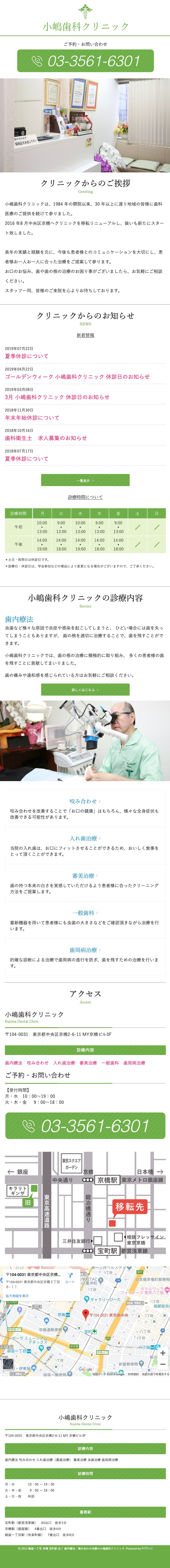 東京都中央区京橋にてご開業の「小嶋歯科クリニック様」のホームページをフルリニューアル制作させて頂きました。