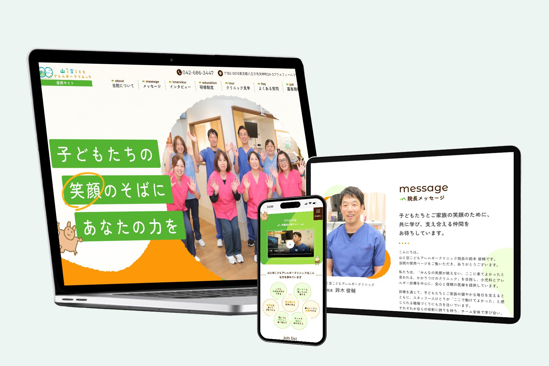 ホーム制作実績 Works ITreat の制作実績の一部を閲覧していただくことができます カテゴリによる絞り込み すべて クリニックその他団体一般企業公的機関医師会・学会歯科医院病院社会福祉法人 Learn More 山と空こどもアレルギークリニック様 採用サイト Web制作 クリニックWebサイト採用サイト Release2025.9 Learn More 四日市はぎのや歯科・矯正歯科・口腔機能クリニック様 ホームページ制作 Web制作 クリニックWebサイトクリニックサイト Release2025.9 Learn More ぎふ糖尿病・内科クリニックやまうち様 ホームページ制作 Web制作 クリニックWebサイトクリニックサイト Release2025.10 Learn More 株式会社あわーず様 ホームページフルリニューアル Web制作 一般企業Webサイトコーポレートサイト Release2025.9 Learn More 株式会社ディプライ様 ホームページフルリニューアル Web制作 一般企業Webサイトコーポレートサイト Release2025.8 Learn More グランデホーム株式会社様 ホームページフルリニューアル Web制作 一般企業Webサイトコーポレートサイト Release2025.8 Learn More 株式会社アクティ様 ホームページフルリニューアル Web制作 一般企業Webサイトコーポレートサイト Release2025.7 Learn More 岡崎グラデンタルクリニック様 プレオープンサイトの制作 Web制作 クリニックWebサイトクリニックサイト Release Learn More 薬剤師就職フェア2025 サイト制作 Web制作 その他団体Webサイトその他 Release2025.1 Learn More 医療法人梶の木会 七夕医院様 ホームページ制作 Web制作 クリニックWebサイトクリニックサイト Release2025.6 Learn More 医療法人 大河内会 おおこうち内科クリニック様 ホームページフルリニューアル Web制作 クリニックWebサイトクリニックサイト Release Learn More 岐阜大学医学部付属病院 がんセンター様 ホームページフルリニューアル Web制作 病院Webサイト病院サイト Release2025.6 1 / 2112345...101520...»Last » Genre Web制作システム開発・アプリ開発事務局・学会運営動画制作動画配信印刷物制作広告運用 Category クリニックその他団体一般企業公的機関医師会・学会歯科医院病院社会福祉法人 Type 名刺内覧会チラシご案内ハガキ院内報リーフレットその他その他ロゴハイブリッド配信オンデマンド配信配信診察券薬袋封筒Webサイトポスターパンフレットチラシ印刷物動画制作その他病院サイト採用サイトランディングページコーポレートサイトクリニックサイトECサイト Taste アットホームエレガントかわいいクールグリッドシンプルスタイリッシュその他ナチュラルハンドメイドフラットポップ TOPページに戻る